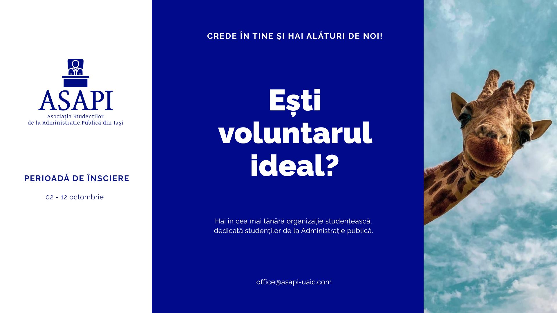 Asociația Studenților de la Administrație Publică din Iași desfășoară în această perioadă procesul de recrutare pentru studenții care doresc să se alăture organizației.Se pot înscrie studenții de la toate ciclurile de studii interesați să participe la activitățile și proiectele asociației.