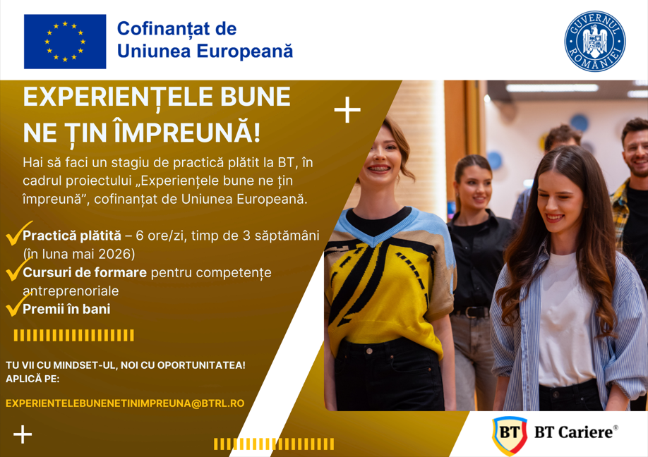 Te invitam sa aplici pentru stagiul de practica care se va desfasura in perioada 11 mai – 29 mai.